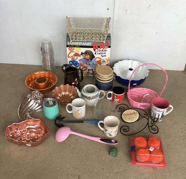 LOT 717 - Bakeing Pans, Sugar Jar, 100 Pc. Cookie Cutter Set, Cups, Baskets
