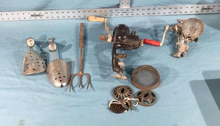LOT 36 - White Mountain Cherry Pitter, Diamond #2 Meat Grinder, Shoe Strechers and More