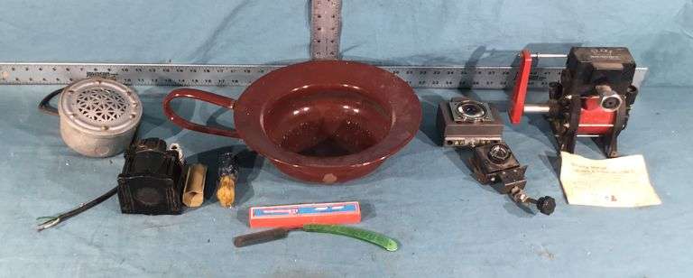 LOT 123 - Vintage Shave Bowl, Assorted Cameras, and Crown 6 Proportioner Pump