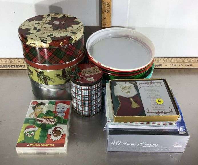 LOT 208 - Christmas Tins, Plastic Containers, Cards & Movie