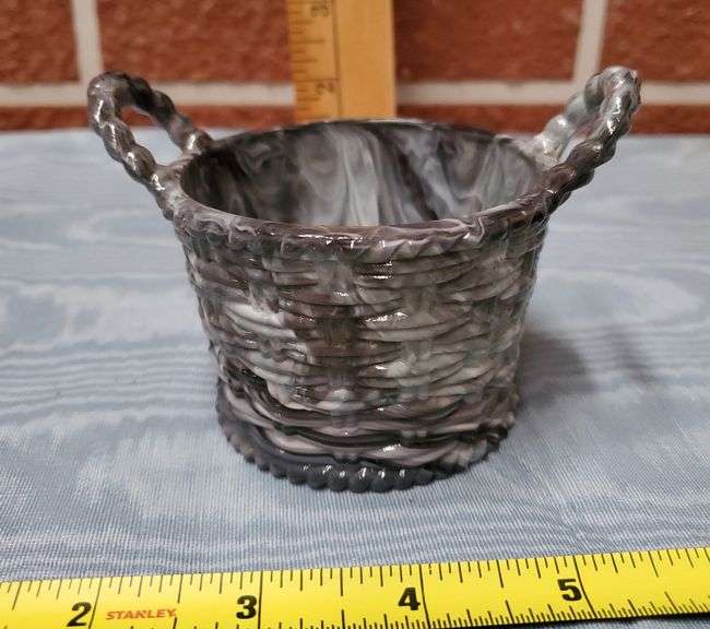 LOT 89 - Black Slag Glass Basket Weave w/Seal in the Bottom 2"×4"