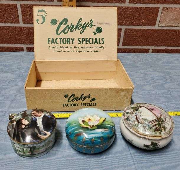 LOT 108 - Cover Powder Dishes(1 Musical) and Cigar Box