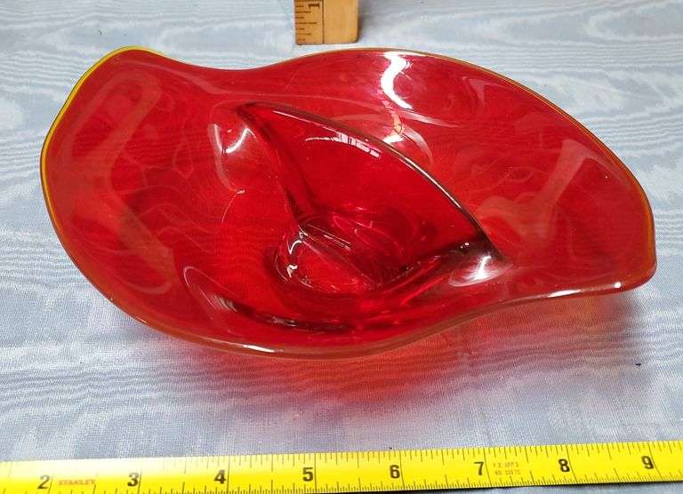 LOT 121 - Viking Art Glass Red Divide Bowl 8"