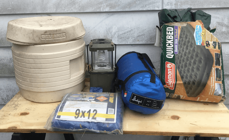 LOT 456 - Queen Air Mattress, Sleeping Bag, 9'x12' Tarp and More