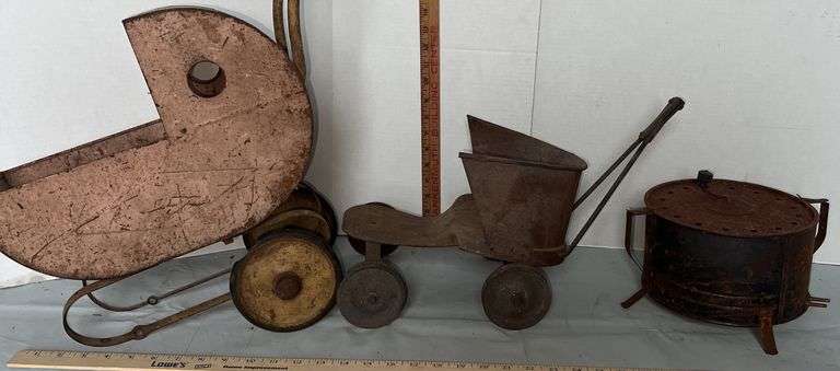 LOT 175 (3) - Antique Doll Toys & Cast Iron Popcorn Popper