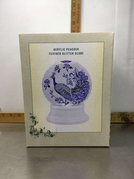 LOT 291 - Cracker Barrel Acrylic Peacock Feather Glitter Globe (new in box)