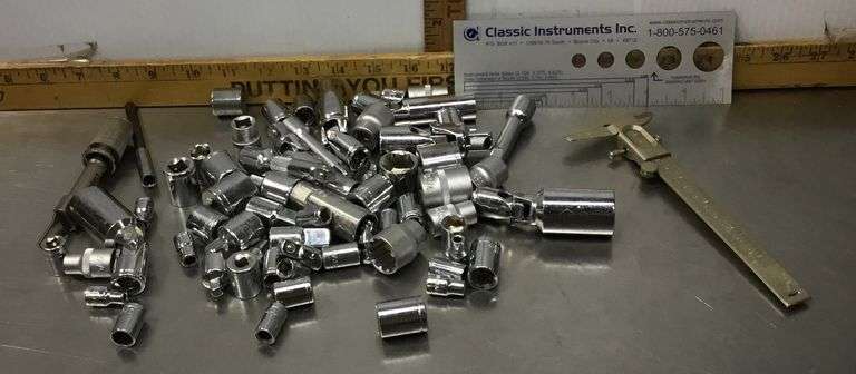 LOT 396 - Sockets, Extensions, Micrometer and Ruler