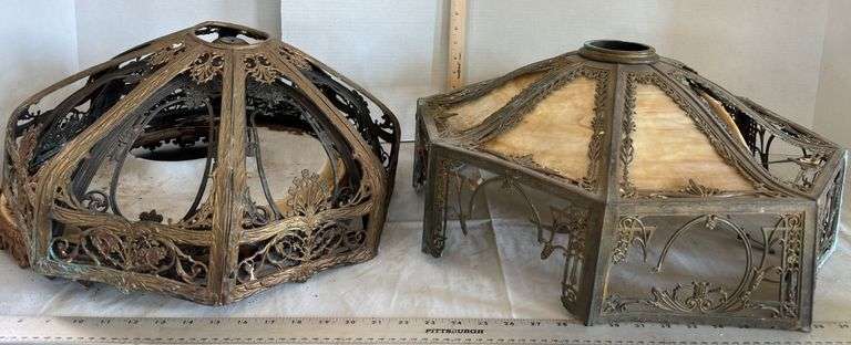 LOT 317 - Slag Glass Victorian Metal Ceiling Light Covers