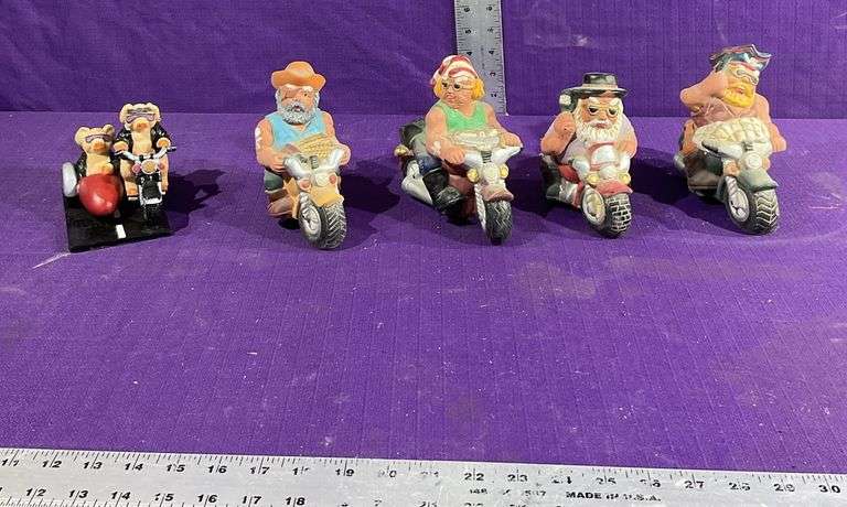 LOT 114 - 4 Pc. Vintage Biker Coin Banks & Pig on A Bike Figurine