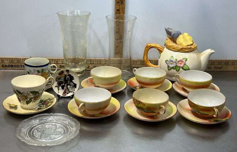 LOT 651 - Tea Cups and Platers, Vases, Decorative Bird Tea Pot