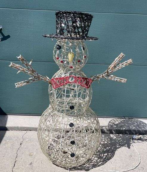 LOT 513 - Frosty the Snowman 45” tall & 32” wide Metal Frame w/ Lights- 1/2 lights up/needs new light strand
