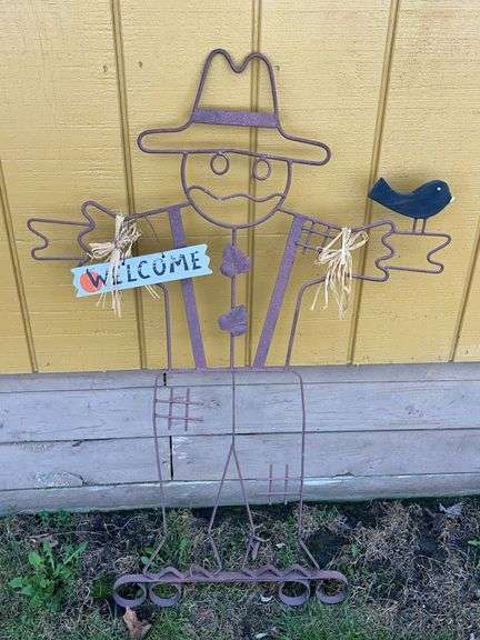 LOT 521 - Metal 42” tall & 27” wide Scarecrow “Welcome” Art