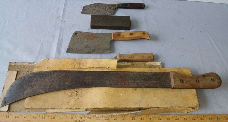 LOT 130 - Machete, Meat Cleavers & Sharpening Stone