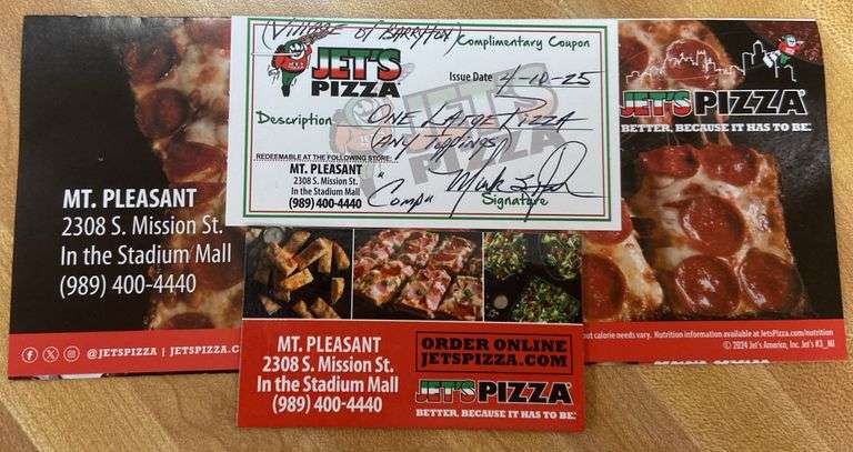 LOT 46 - Jet’s Pizza Mt.Pleasant Gift Certificate for 1 Free Large Pizza - Any Toppings
