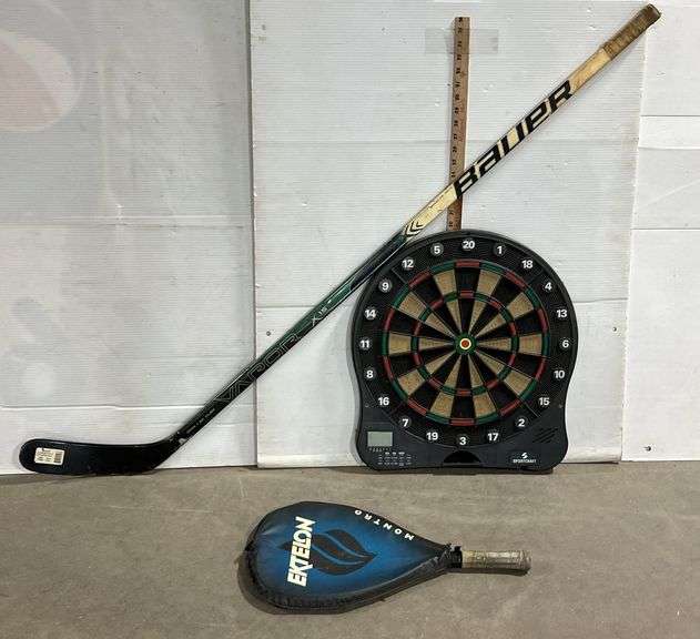 LOT 405 - Bauer Hockey Stick, Dart Board, Ektelon Racket