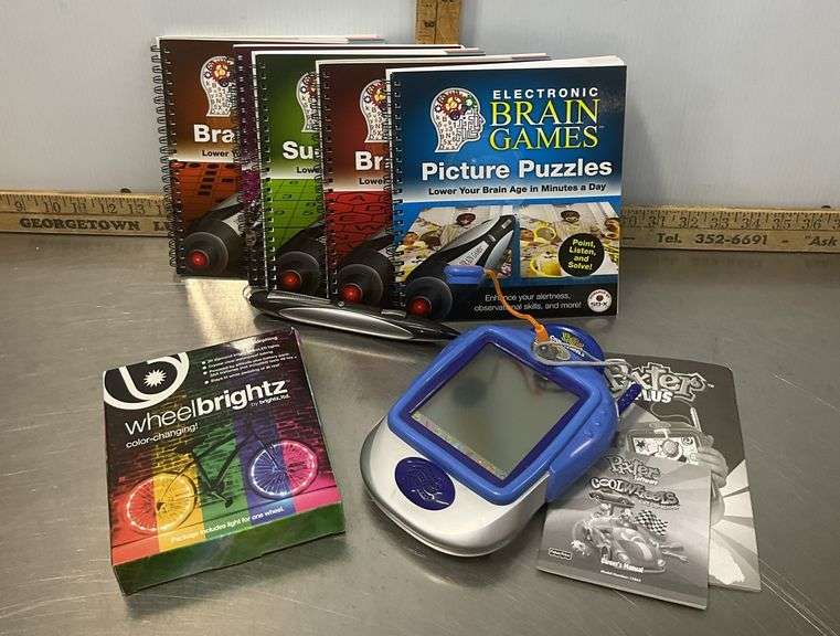 LOT 264 - Electronic Brain Games with Pen, Wheelbrightz Color Changing Bike Wheels & Pixter Software