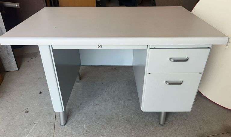 LOT 73 - Three Drawer Metal Desk (30”T,50”W,32”D)