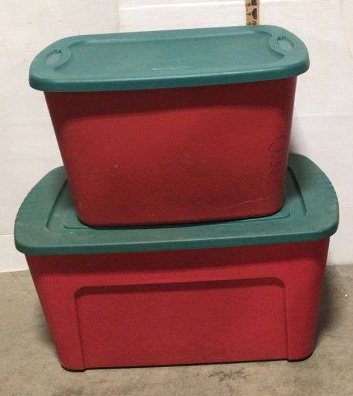 LOT 446 - Red Sterilite Totes with Green Lids