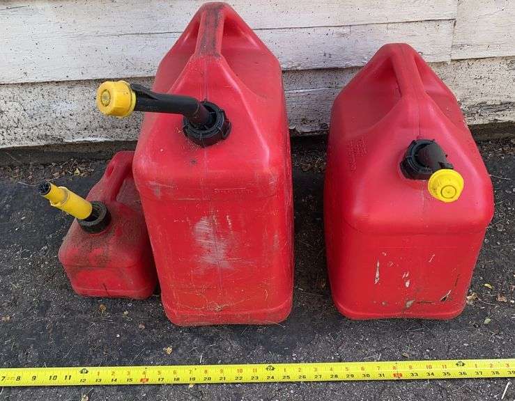 LOT 55 - 3 Red Fuel Containers w/ Contents