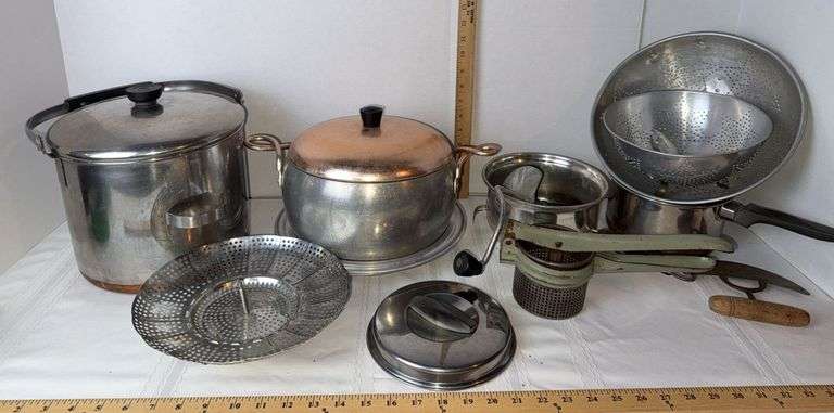 LOT 356 - Revere Ware 1801 Copper Bottom 6 Quart Stock Pot, Wear-Ever Hallite Stockpot & Potato Ricer