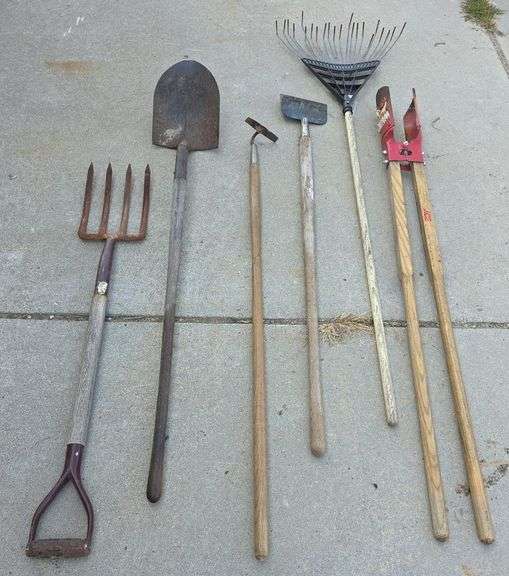 LOT 857 - Post Hole Digger, Shovel, Hoe, Rake