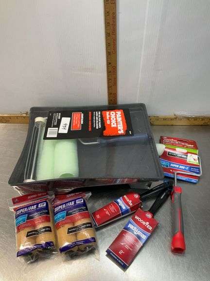 LOT 503 - 2 Wooster Paint Brushes, Painters Choice Kit & Mini Roller Cage & Extra Covers