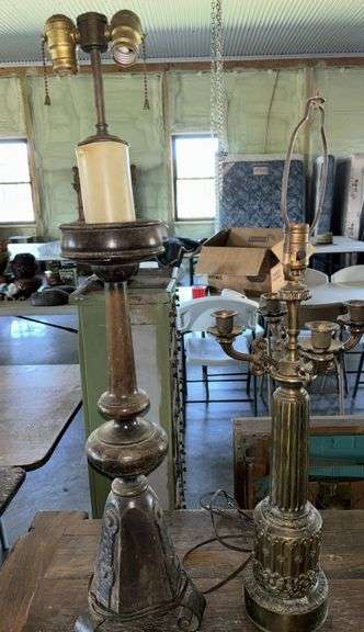 LOT 125 - Wood 35” Project Lamp & heavy Metal 30” Project Lamp