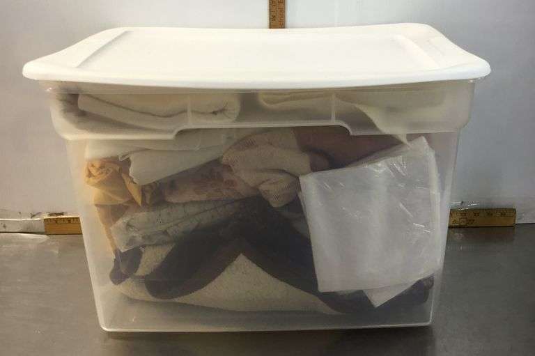 LOT 18 - Tote With Material, Blankets, Tablecloths and More