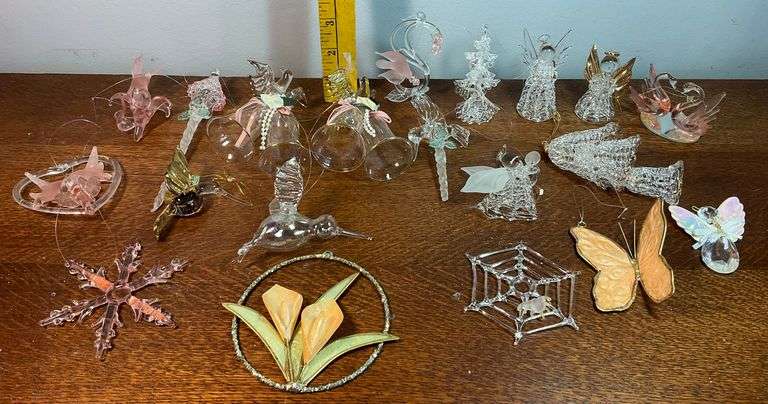 LOT 610 - Fragile Glass Ornaments ( hummingbirds, swans, bells, birds & more)
