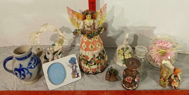 LOT 101 - Salt Glazed Stoneware Pitcher from Germany, Wooden Angel by Jim Shore and Misc Pieces