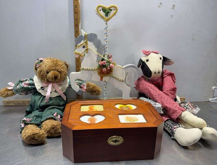 LOT 130 - Ladies Jewelry Box & Stuffed Animals