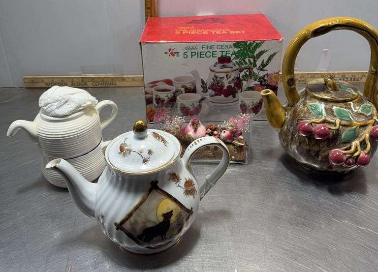 LOT 145 - 5 Piece Fine Ceramicware Tea Set, Assorted Tea Kettles