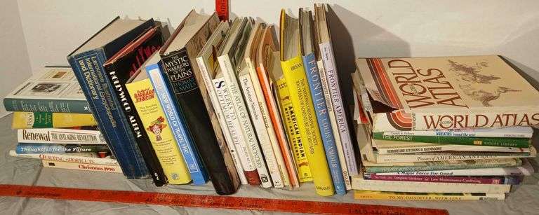 LOT 125 - Informational Books, Quilting, Masonary, World Atlas, Remolding and More