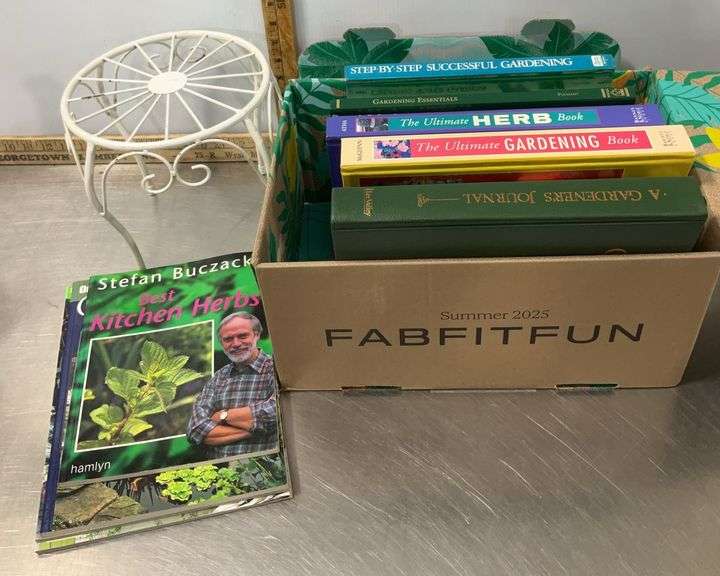LOT 176 - Gardening Books & Magazines & Small Plant Stand