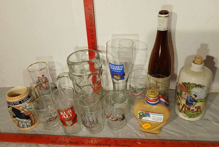 LOT 137 - Vintage Apostel Stoneware Wine Jug, Irish Village Scene and Glasses From Germany