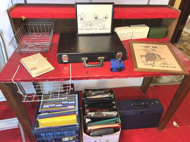 LOT 553 - Desk 38”T X 40”W & Office Supplies