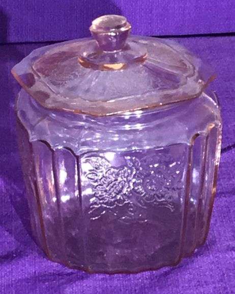 LOT 502 - Anchor Hocking Mayfair Open Rose Pink Depression Glass Biscuit Jar w/ Lid