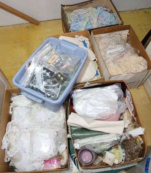 LOT 162 - Six Boxes of Lace and a Small Tote of Doll Making Accesories