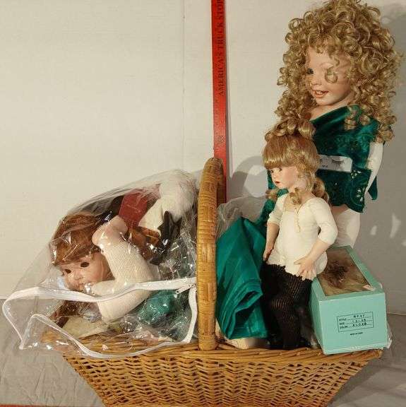 LOT 177 - Wicker Basket 21"×13" with Dolls and Doll Supplies