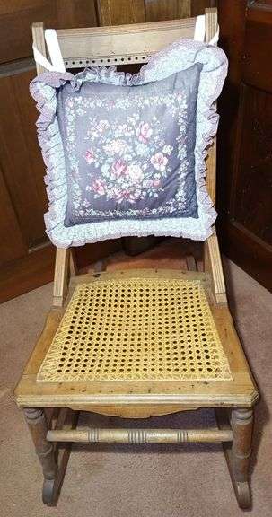 LOT 181 - Antique Oak Rocking Chair with a Woven Cane Seat (no back)