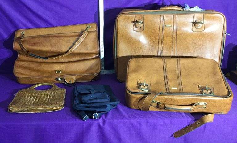 LOT 529 - (2) Vintage Suitcases, Mini Backpack, Vintage Purse and Leather Garment Bag