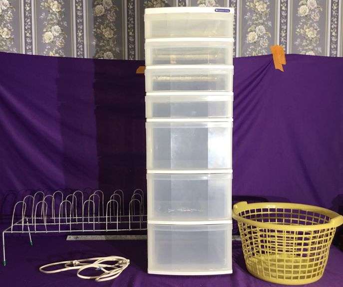 LOT 535 - 7 Drawer Plastic Storage Unit w/ Wheels, Shoe Rack and More