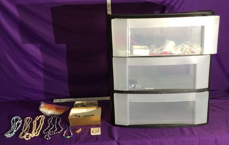 LOT 536 - 3 Drawer Plastic Storage Unit w/ Costume Jewelry