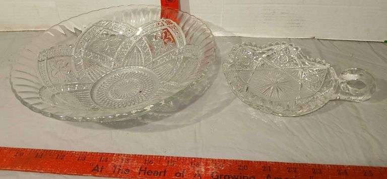 LOT 229 - Indiana Glass Flower Medallion Bowl + American Brilliant Cut Glass Nappy Dish w/ a Handle