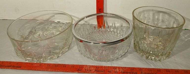 LOT 232 - Arcoroc France + Duralex Saint Gobain Serving Bowls and Princess House Heritage Etched Glass Ice Buc