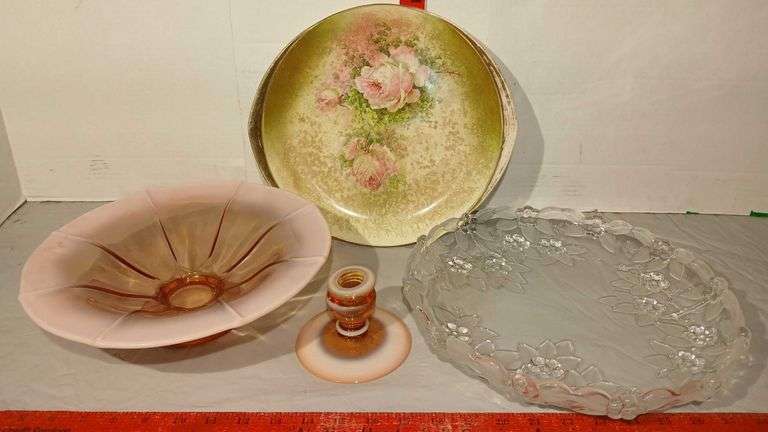 LOT 233 - Fenton Cameo Opalescent #857-11 Flared Footed Console Bowl (base needs repair) Two Serving Platters