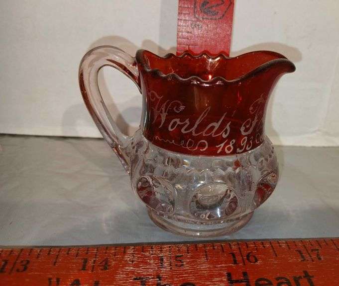 LOT 245 - Vintage Souvenir Glass Pitcher from the 1883 Chicago's World Fair