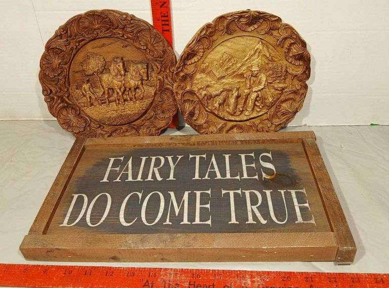 LOT 251 - Two Hand-Carved Wooden Wall Plaque and Painted Wooden Sign