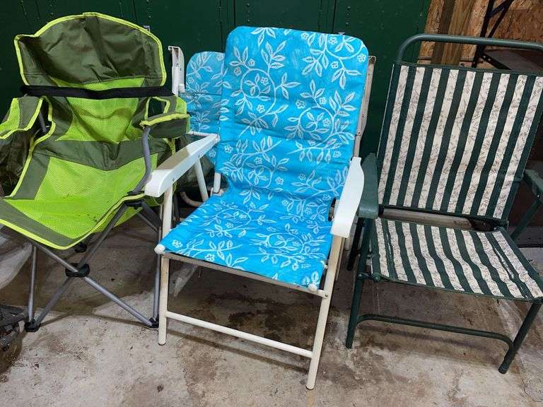 LOT 18 - Four Folding Chairs & One Bag Chair