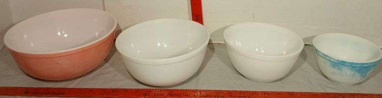 LOT 255 - Pink 404 Pyrex Bowl and Three Color Faded Primary Bowls